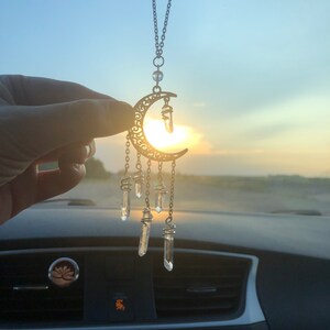 Hanging Car Pendant Dangle Moon Healing Crystal Accessories Rearview Mirror Decorations Hanging Ornaments Home Decoration Natural Gemstone Citrine Amethyst Amazon De Automotive